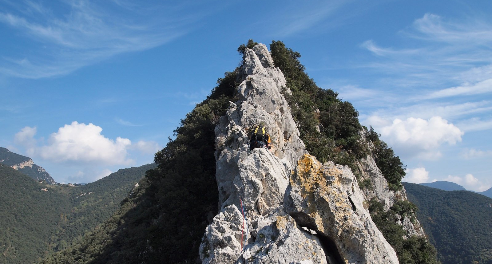 "Spectaculaire crête nette et aérienne, où nous allons profiter de l'escalade, l'environnement sauvage de l'Alta Garrotxa"