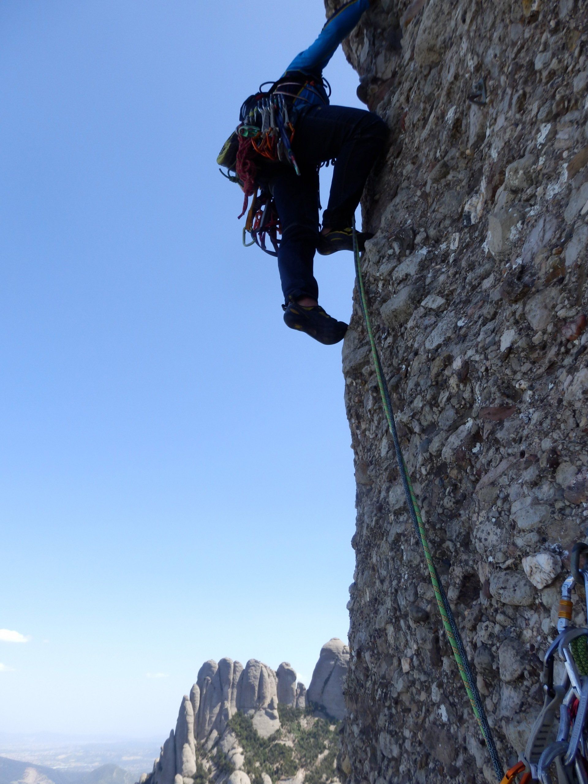 Dans la montagne de Montserrat, il existe de nombreuses aiguilles différentes et spectaculaires, mais il y en a une qui se démarque des autres; le Cavall Bernat, avec ses 250m et sa forme élancée et étroite sur sa face nord, en fait l'aiguille d'escalade la plus spectaculaire et emblématique de Montserrat. Nous avons choisi la Via Punsola-Reniu car elle a une difficulté abordable Vº forcée et nous fera profiter au maximum longtemps après longtemps. Le guide supervisera l'activité en tout temps et dirigera la corde du début à la fin.