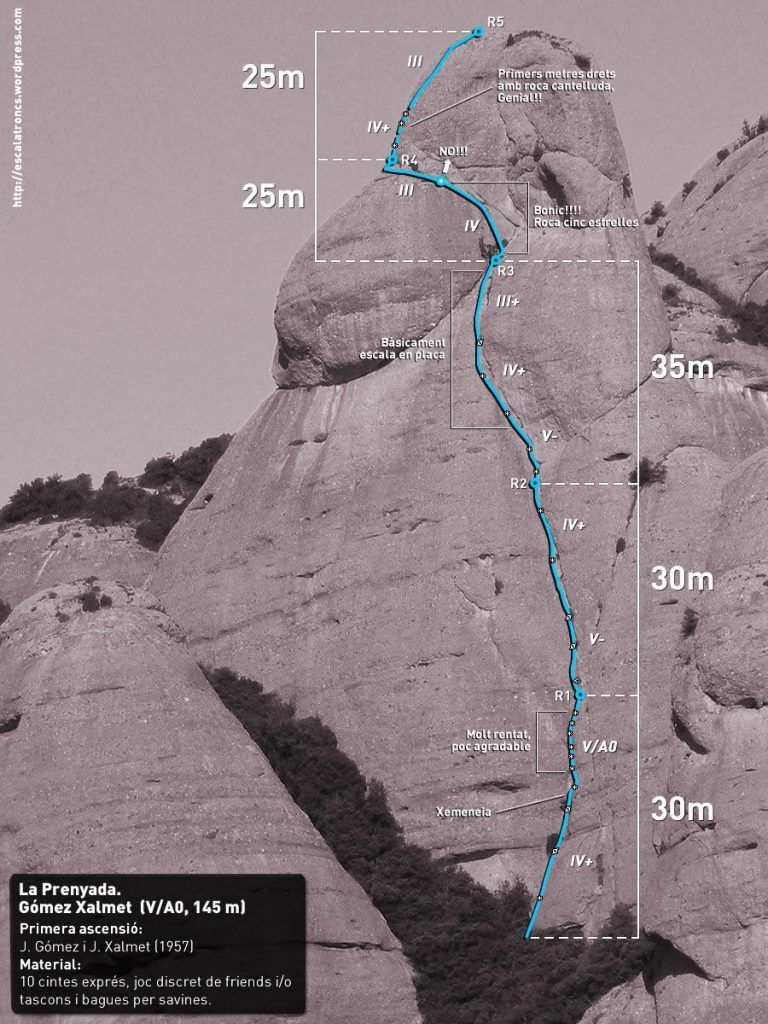 Environ: 30' Durée totale de l'activité: 5 heures environ Orientation: Sud-ouest Dénivelé: 150 mètres Difficulté: Maximum jusqu'à V Núm. de rappels : 1